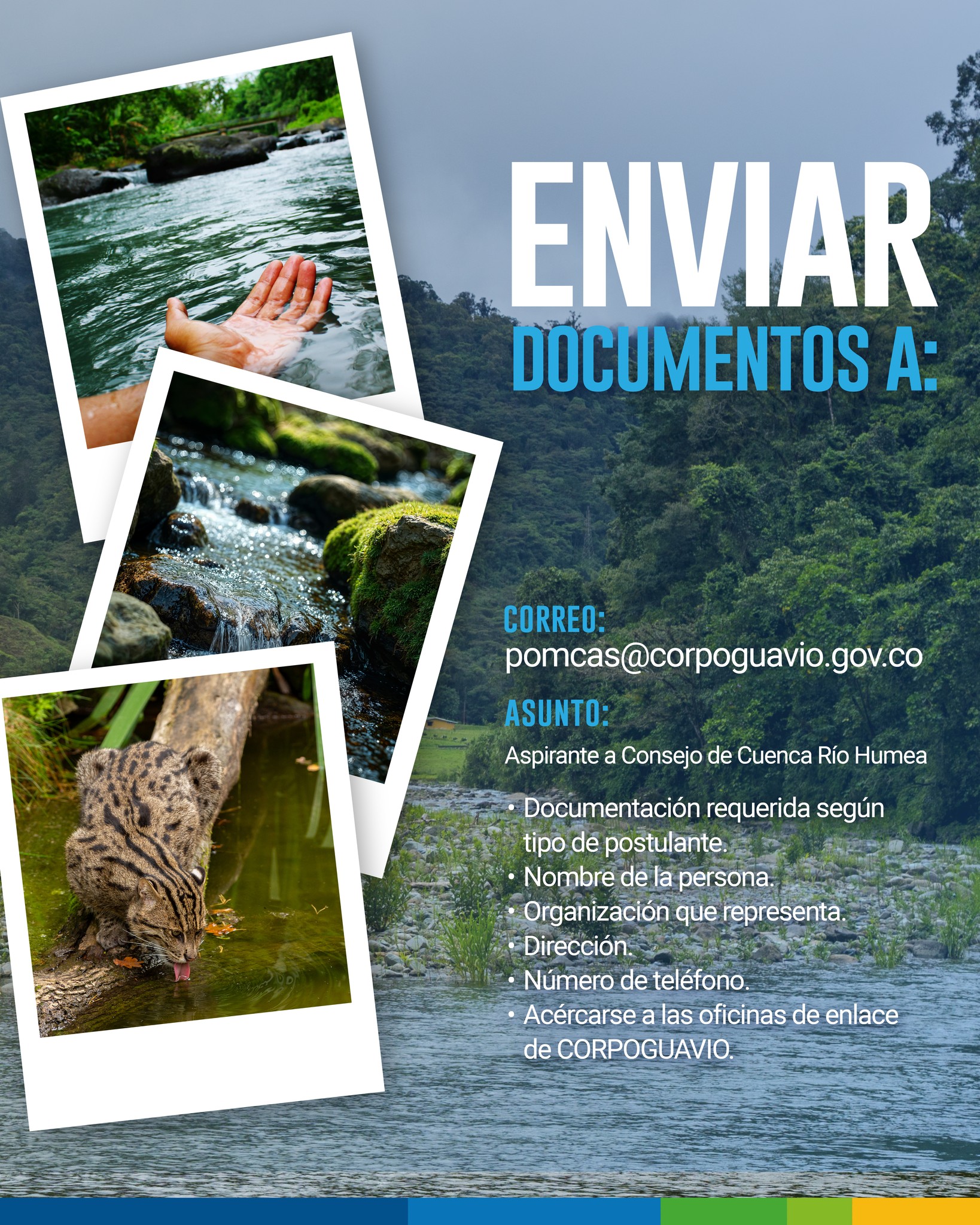 El Río Humea nos conecta. Participa en la elección del Consejo de Cuenca #POMCA Río Humea y contribuye a la gestión integral del agua, la conservación del territorio y el bienestar de nuestras comunidades.